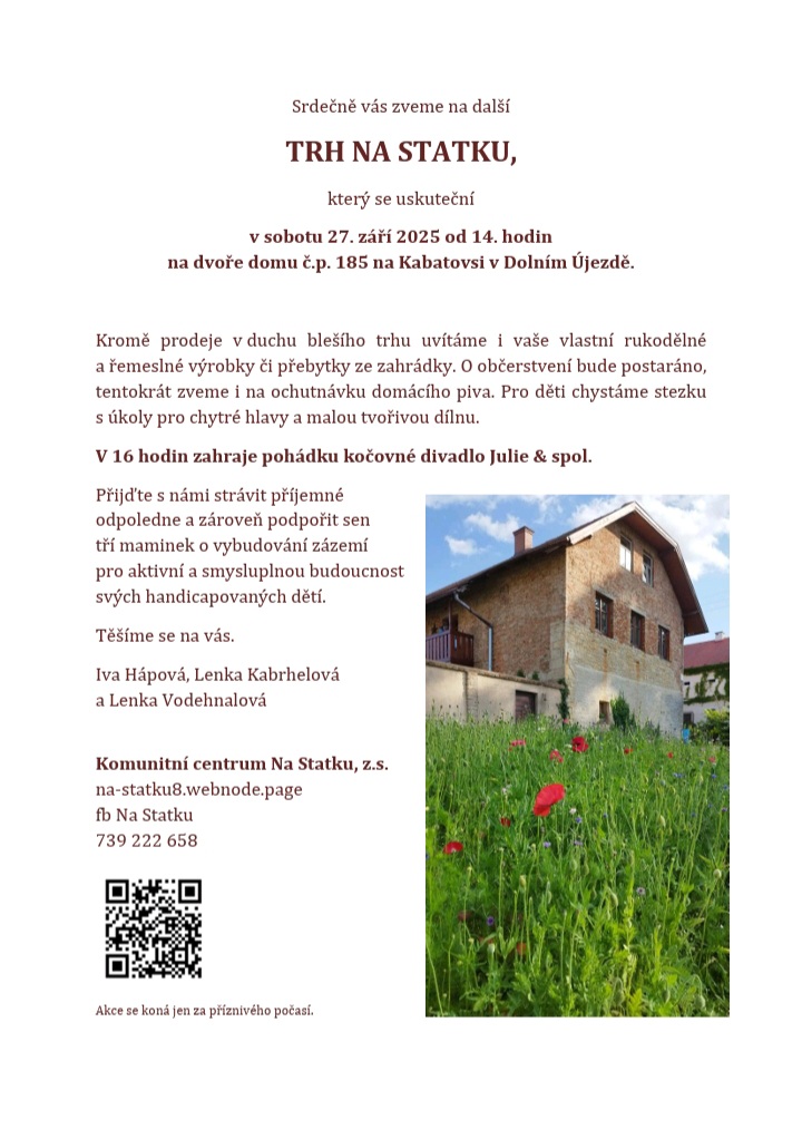 Chtěly bychom ještě jednou poděkovat vám všem, kteří jste nás podpořili při prvním počinu našeho spolku, květnovém bleším trhu. Děkujeme vám, kteří jste nabídli pomoc, přišli a podíleli se na hezkém dni:-) Děkujeme za podporu panu starostovi, dolno i hornoújezdským hasičům za půjčení stolů a lavic a všem milým sousedům za pomoc a shovívavost. Milé a zajímavé pro mě bylo také setkání s manžely Janem a Martou Juzovými a jejich vyprávění o historii statku.